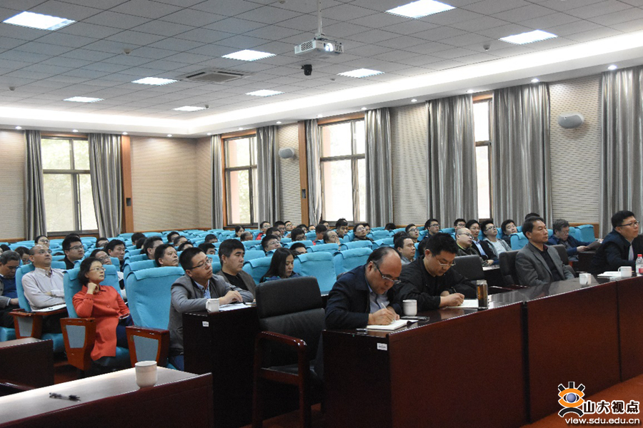 朱德建从中国共产党代表大会制度的历史讲起,分别从山东大学第十四次党代会召开的时代背景和重要意义、党代会提出的方略举措、如何贯彻落实第十四次党代会精神三个方面,论述了“怎么看”“怎么学”“怎么办”三个具体问题。他从国家、地方和学校三个层面强调了党的核心统领作用,指出学校第十四次党代会明确了山东大学的历史方位、发展任务和发展战略。他结合我国中国特色的社会主义迈入新时代,山东大学“双一流”建设迈向新阶段,和学校事业发展站在新起点的时代背景,总结了学校过去五年取得的主要成绩和进一步发展面临的主要问题,进而引述了学校第十四次党代会提出的各项方略举措。随后,朱德建结合资产与实验室管理工作阐述落实党代会的具体举措,从办学用房、实验仪器设备、大型科研平台、高水平实验技术队伍等角度解读了党代会报告的相关内容,最后号召全院师生要带着感情去学习此次党代会报告,要从积极正面的角度看待问题、解决问题,在各项工作中都要坚信“一切皆有可能”,只要学校、学院和每位师生能够站在同一频率实现“同频共振”、凝心聚力开展工作,第十四次党代会设定的各项目标就一定能够顺利实现。