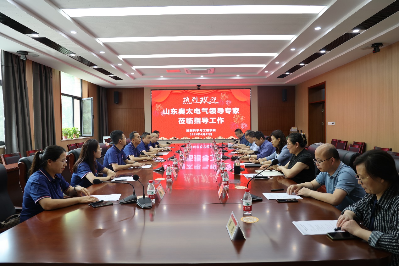 高瑞对奥太电气有限公司一行的到来表示热烈欢迎并介绍了控制学院在学科、科研、学生培养等方面的情况。他指出,本次共建恰逢其时,高度符合学校党建引领的战略要求。双方重点发展领域和研究方向同向同行,也为以后更好的合作共赢提供了坚实的基础,希望双方以本次共建活动为契机,将各项工作做深做实,在人才培养、科技创新、成果转化、平台建设等多个领域加强交流协作,充分整合双方优势资源,把党建工作转化为助推事业发展的驱动力。