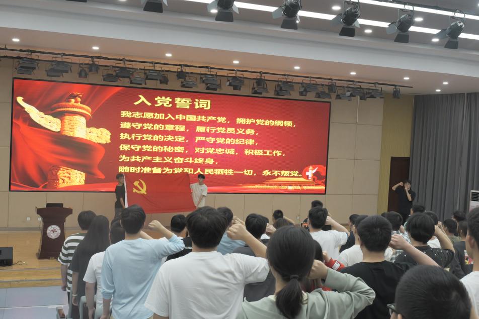 2019级本科生党员王志浩带领全体党员高举右手,面对鲜红的党旗庄严宣誓,宣誓慷慨有力,承诺掷地有声,体现了全体党员对党的赤胆忠心,坚定信念跟党走的信心和决心。党员同志们重温入党誓词,切实感悟到身为党员的责任担当和对党和人民的忠诚。最后,由吴晓晴、郭恒喆、韦美佳、马雁思为毕业生党员颁发毕业礼品,引导勉励全体党员不忘初心、牢记使命,时刻牢记党员身份,增强党员意识,强化党性修养,砥砺初心勇担时代重任,赓续奋斗传承山大基因。