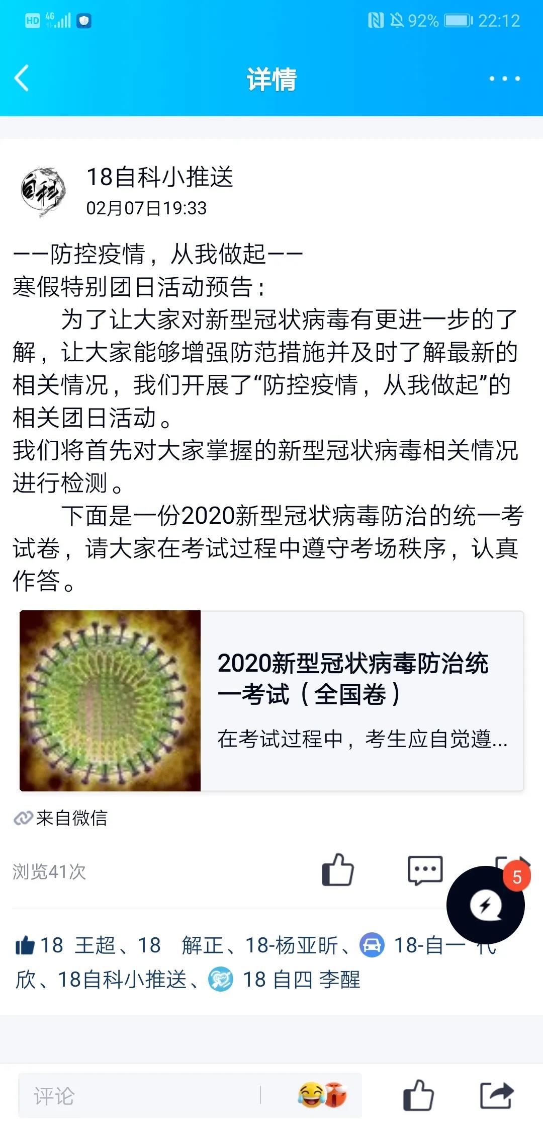 为了用我们的力量来驰援武汉,驰援国家,自动化科学班级开展了一系列活动,线上的疫情问卷调查活动。