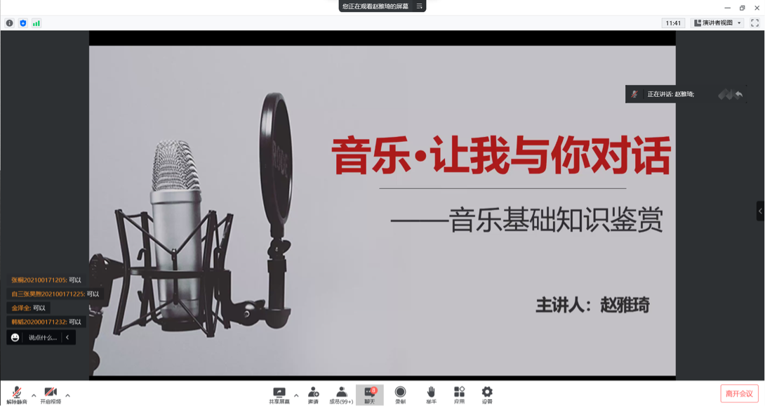 5月6日,kaiyun开云官方网页版举办美育活动第七期—“控制美谈之音你而来”主题讲座,艺术学院研究生赵雅琦担任主讲人,近300名同学参与此次线上活动。