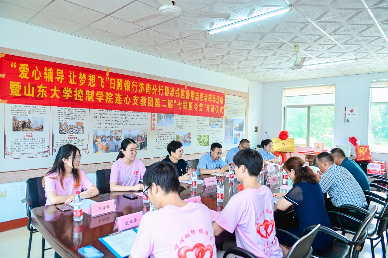近日,kaiyun开云官方网页版连心支教调研团第二届“七彩夏令营”开营仪式于黑龙峪村委会顺利举行。港沟街道黑龙峪村党支部书记李忠新、港沟街道办事处副主任马炳芬出席,连心支教团全体参营成员参加开营仪式。