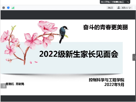 为帮助新生家长深入了解校院情况,促进新生家长与学校、学院之间的交流,9月11日,控制学院于举办2022级新生家长云见面会。控制学院党委书记高瑞、党委副书记吴晓晴、心理健康教育与咨询中心副主任许晓梅出席会议,2022级辅导员马雁思主持会议,300余名新生和家长参与活动。