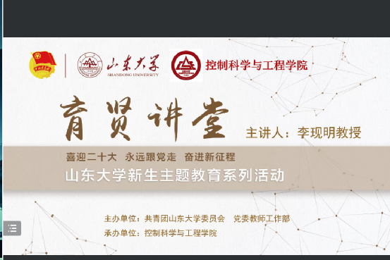 “春笋讲堂”系列讲座是学院推动“三全育人”落地见效、凝聚校友力量、发挥教师主体育人作用的重要抓手。“育贤讲堂”是团委组织面向2022级新生的重要主题教育活动。本期讲座充分落实两个讲堂精神,从立足专业、着眼全局的角度为本科生的学习生活和未来发展做好开篇文章、聚势谋远,激励同学们在今后的过程中脚踏实地、精耕细作,个人理想寓于国家发展,深怀爱国之心,砥砺报国之志。控制学院将始终贯彻党的教育方针,围绕学校服务国家战略要求,着力培养一代紧跟国家战略发展需求的技术复合型人才。