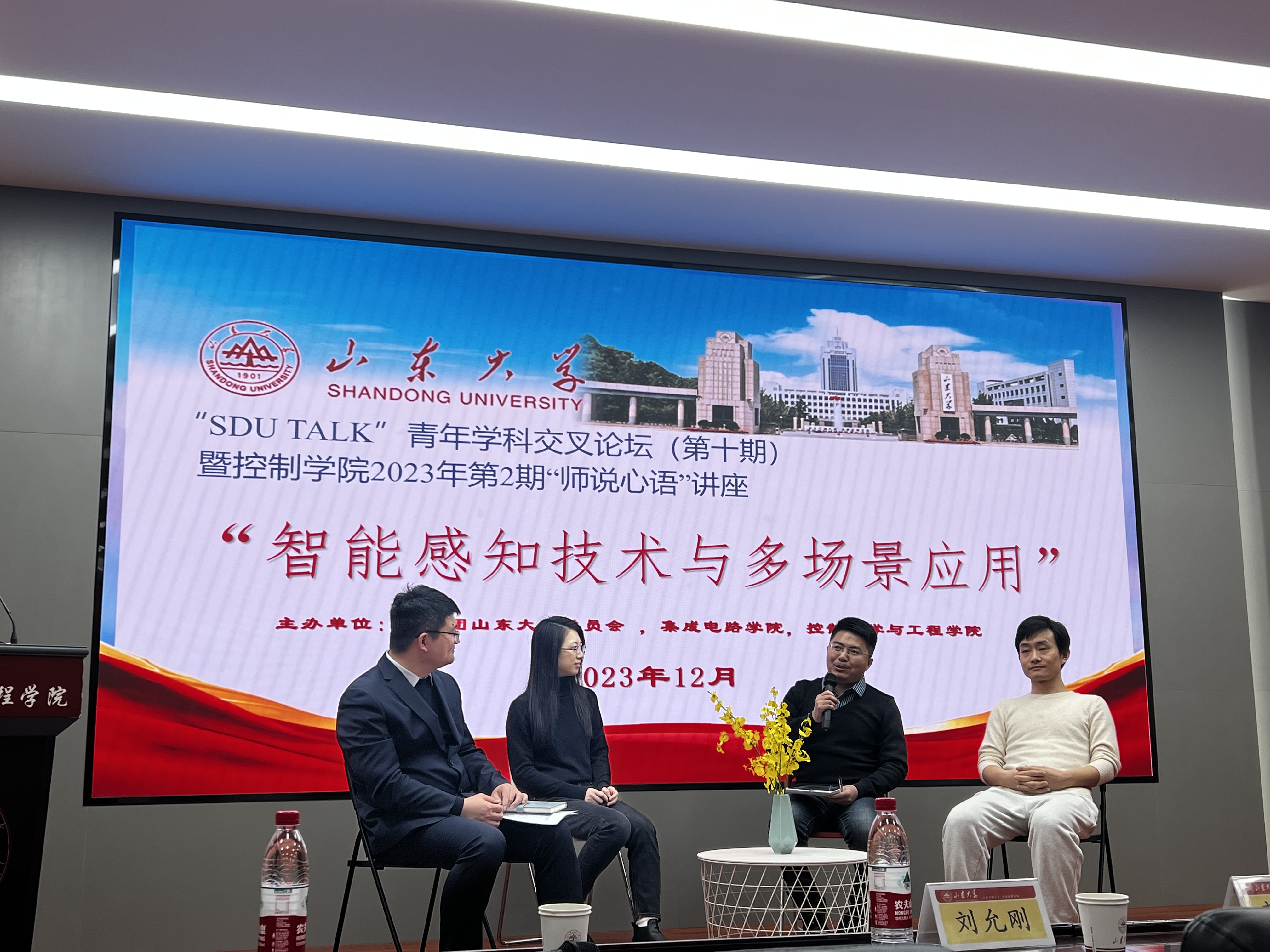 12月27日,第十期“SDU TALK”学科交叉青年论坛暨控制学院2023年第2期“师说心语”讲座在千佛山校区举办。本期论坛以引领“智能感知技术与多场景应用”为主题,山东大学团委书记姜炳刚、kaiyun开云官方网页版党委书记高瑞出席活动并致辞,kaiyun开云官方网页版教授刘允刚、宋然作为特邀点评嘉宾出席论坛,集成电路学院教授李虎,kaiyun开云官方网页版研究员高树华、教授王超群、研究员贾潇作为主讲嘉宾参与活动。