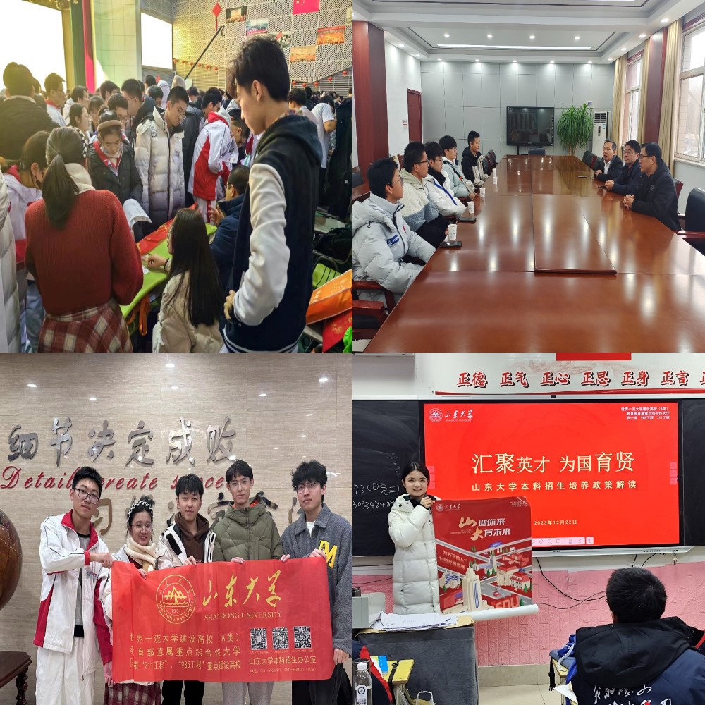 丰富形式,深化活动影响。回访过程中,各个活动团队精心筹办、充分准备、在已有的活动形式上积极创新。“山迎娄邵,相约启梦”团队、“我的山大我的家”团队返回母校,以布置宣传摊位、开设特色展台的形式,声情并茂地讲述山大故事,分享轶闻趣事、个人经历。“相约山大,立志启航”团队、“弘扬山大队”团队把握好本次高校宣讲机会,对山大的历史、山大的硬件设施、山大的衣食住行以及山大的招生方式进行了详细的介绍,耐心回答学弟学妹们提出的问题,活动效果卓越。“母校回响山大梦,校友情谊永流传”团队、“筑梦山大”团队结合自身经验,与母校学弟学妹分享高中学习心得和大学心理变化。“高山仰止,山大行至”团队、山东256“保山东大学就队”团队则以PPT和宣传片的形式,展示山东大学一校三地八校区丰富多彩的自然和人文景观。