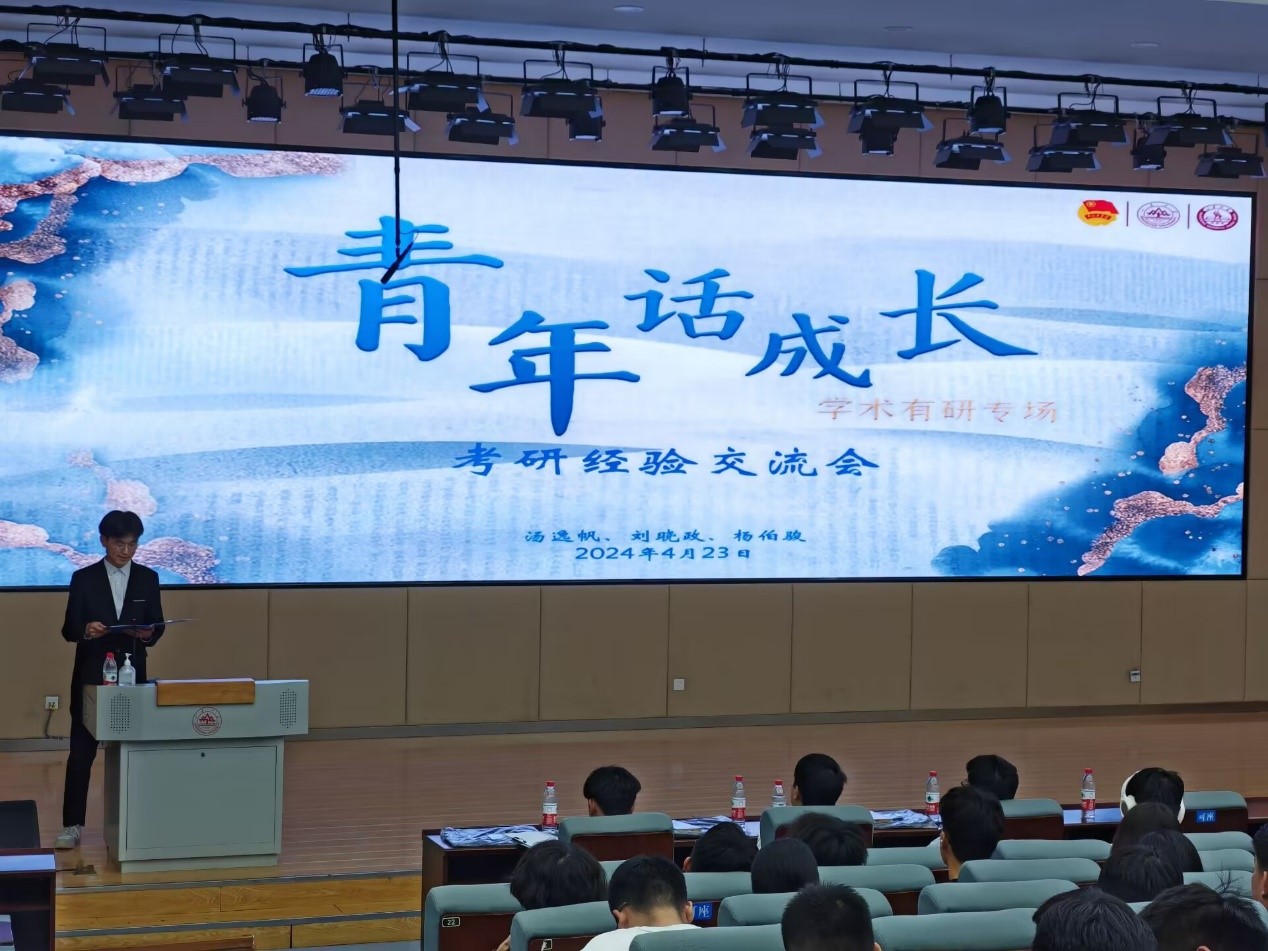 为切实帮助低年级同学提高备考效率和了解备考方法,激发同学们追求卓越的动力和信心,推动优良学风建设,近日,kaiyun开云官方网页版青年说考研经验交流会,2020级本科生汤逸帆、刘晓政、杨伯骏担任主讲人,分享自己的考研经历以及应试经验,为现场具有考研规划的同学传授学习经验和考试技巧。