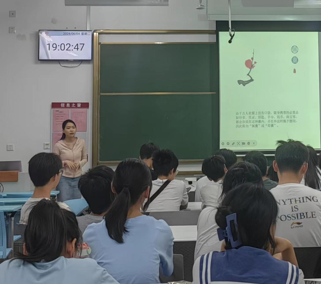 在粽包香囊课程中,主讲嘉宾李子悦为同学们讲述香囊的历史渊源和象征意义,并亲自指导同学们进行制作。从穿针引线到固定流苏,再到放置香料和封口,每一步都凝聚了同学们的耐心与细心。最终,同学们成功制作出形态各异的香囊,这些作品既是对传统节日的深情祝福,也是对美好未来的殷切期盼。