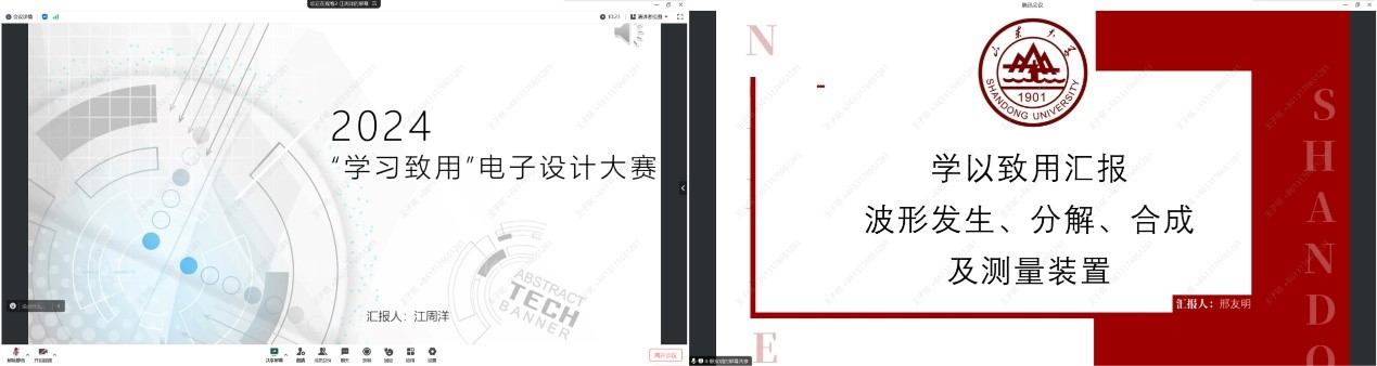 本届比赛赛题是“波形发生、分解、合成及测量装置”,面向2022级本科生组队开展。前期经由评委老师对作品的细致测评,确定了18支队伍参与决赛答辩会。此次答辩会按照既定名单有序进行。每组参赛队伍中,由一名同学代表通过精心制作的PPT,在线上平台生动展示了小组项目的设计思路、技术实现、创新点及实际应用价值。汇报内容既体现了学生们扎实的专业知识基础,又呈现出他们在电子技术领域的创新思维和实践能力。在评委提问部分,应对评委们专业且富有挑战性的问题,参赛同学们冷静思考,迅速应答,展现了良好的应变能力和专业素养。这一环节不仅考验了同学们对项目细节的掌握程度,也促进了师生之间的深入交流与探讨。经过评审委员会综合作品测评和答辩情况,最终评选出一等奖4项,二等奖6项,三等奖8项。