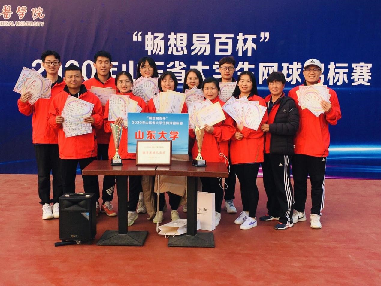 11月10日至14日,2020年山东省大学生网球锦标赛在潍坊奥体中心举行。山东大学网球队在教练员马颖竹、张洪振的带领下,获得丙组赛单项1金1银2铜以及男子团体冠军、女子团体亚军等优异战绩。我院物流工程专业2016级博士胡金昌获得男子团体丙组冠军,男子单打丙组第七名。