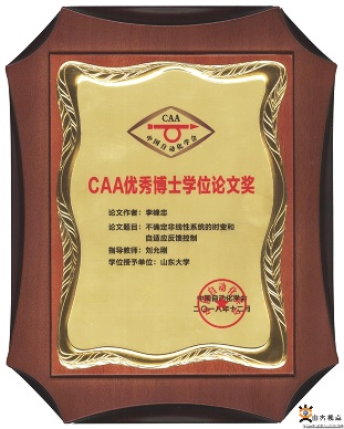 一、控制学院博士李峰忠、商云龙荣获CAA博士学位论文奖