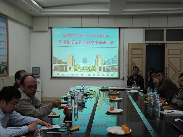 5月15日上午,控制学院自动化专业特色教育班双语教学经验交流与研讨会在四号楼二层会议室顺利召开。会议由自动化系主办,卓越班和理工复合班所有双语教学授课教师、控制学院双语课程教学梯队教师、卓越班和理工复合班的学生代表参加了会议。控制学院张承慧院长、高瑞副院长、张振山副书记到会参加了研讨活动。