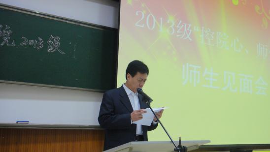 在见面会上,校长助理贾磊教授做了热情洋溢的讲话,并就新生人生规划问题做了具体阐述。王玉振院长在会上做了主题报告。他对学院历史与现状及发展前景进行了概述,并对新生们提出了三点期望:胸怀理想,心系祖国;塑造人文与科学两种精神;培养“本分”与“本事”两种功夫。会上,院党委王志明书记宣读了2013级班主任配备名单。田新城副院长宣读了控制学院2013年度获得国家奖学金的获奖学生名单。最后,学院领导和老师代表为新生班级赠送了文体活动用品,希望同学们能拥有更为丰富精彩的课余生活。会上,班主任代表李可老师,老生代表亓鲁、新生代表刘华谨同学做了精彩发言。