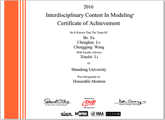 2016年美国大学生数学建模竞赛成绩日前揭晓。kaiyun开云官方网页版的3名同学傅博,吕承侃,王成罡组成了参赛队伍,由我院李晓磊老师担任指导老师,经过四天四夜连续96小时的紧张奋战,最终获得了二等奖(Honorable Mention)的优异成绩。