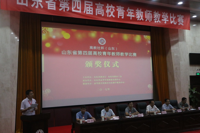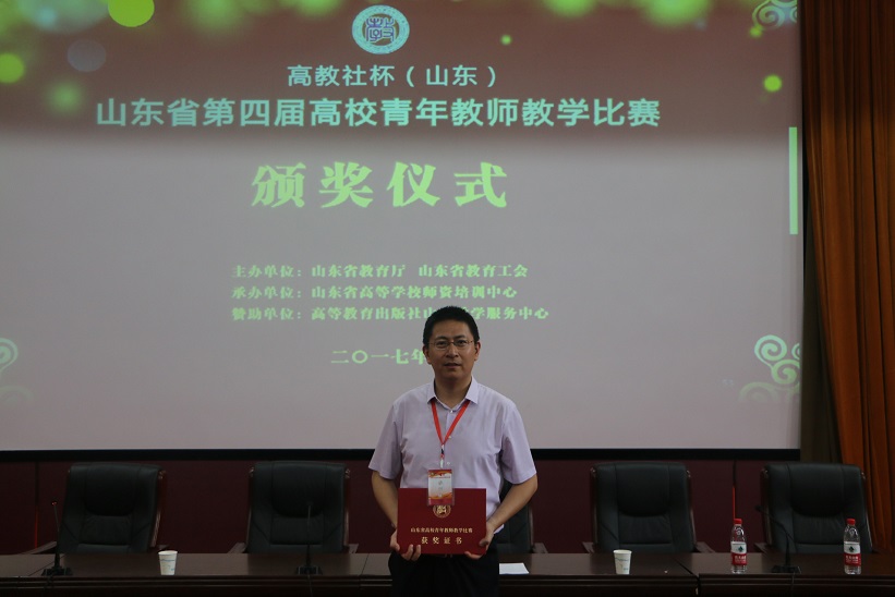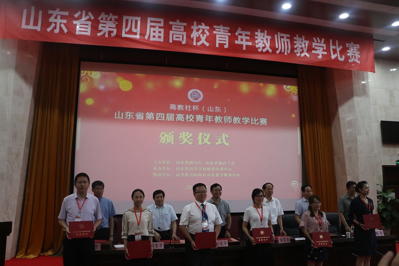山东省高校青年教师教学比赛由省教育厅、省教育工会主办,是我省最高级别的教学赛事。本届比赛从2016年12月开始启动,在长达半年多的时间内,完成了各高校内部选拔赛、省级初赛、复赛、决赛等多个竞赛环节的层层选拔。在 “讲好一门课”的宗旨下,每位参赛教师围绕自己教授的一门课程录制了现场教学视频、详细编写20个课时的教学设计、精心制作了20个教学节段PPT;复赛和决赛采用现场比赛方式,在20节课中随机抽取一节,进行现场教学展示和教学反思。最终在评委专家严格评比和匿名打分后确定了省赛一、二、三等奖的获奖者。获得该项比赛的奖项,不仅是对获奖者教学能力和教学效果的高度认可,而且是对青年教师投身教学、奉献教学的极大鼓舞。