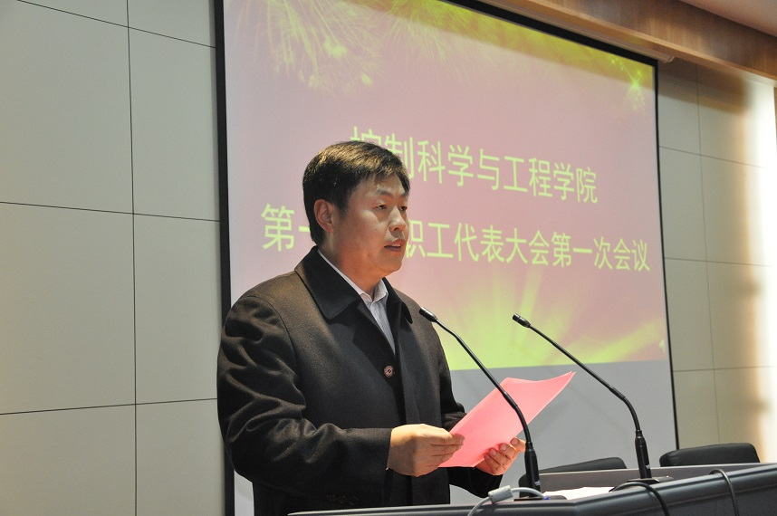 2014年12月6日,kaiyun开云官方网页版第一届教职工代表大会第一次会议在千佛山校区控制学院报告厅召开。来自学院各基层单位的52名教代会代表以及部分特邀代表和列席代表齐聚一堂,共商学院发展大计。校工会主席李红同志受校党委副书记尹作升同志委托出席大会并讲话、校工会副主席丁培卫同志出席了会议。控制学院党委书记王志明同志致开幕词,党委副书记徐波同志主持会议。