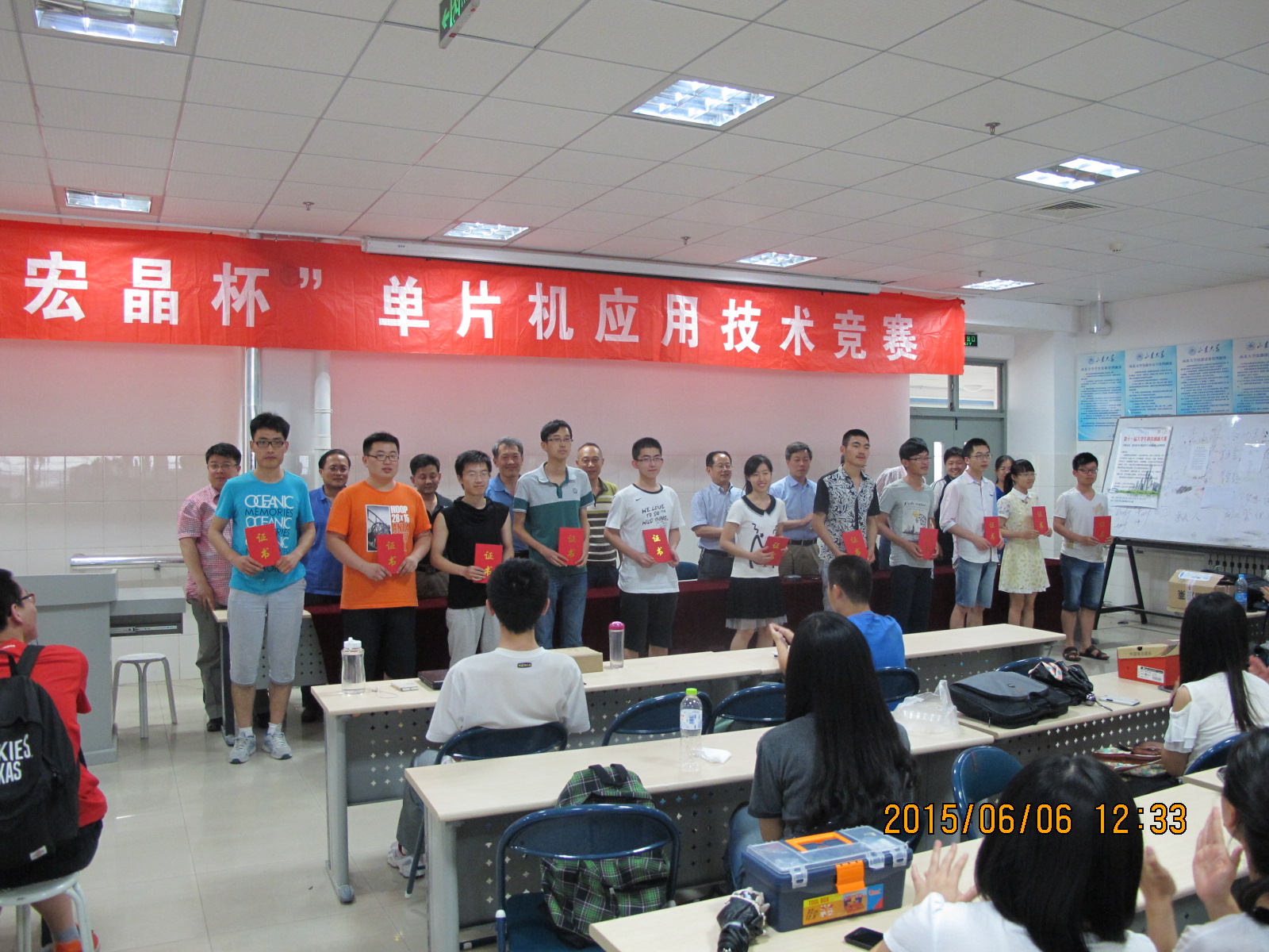 6月6日,2015年山东大学“宏晶杯”单片机应用技术竞赛在兴隆山校区工程训练中心落下帷幕。经专家评审,大赛共评出一等奖22项、二等奖34项、三等奖48项。本科生院齐炳和院长助理、控制学院党委书记王志明教授、计算机学院副院长贾智平教授、山东管理学院孙梅玉教授以及来自控制学院、信息学院、电气学院、物理学院、机械学院的专家出席了颁奖典礼。