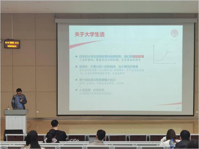 晚7时,讲座正式开始。程吉禹老师首先从应用于生活中的机器人开始介绍,由浅入深。在深度学习技术逐渐被攻克的大背景下,传统机器人与人工智能有机融合,应用与算法相互交融,新时代机器人的出现为人类社会带来无限可能。从自动监测路况、自动检测电路情况的无人机,到辅助医生做高精度手术的机械臂,再到进行医学探查的胶囊微型机器人,无不体现着新时代机器人卓越的发展成果。接着,程吉禹老师为同学们介绍实验室研究项目,揭开实验室神秘的面纱。讲座的最后阶段,结合自身大学经验,从做人、做事、做学问等方面,为同学们提出了中肯切实的建议。对于同学们提出的问题,程吉禹老师耐心地一一进行解答,激发了同学们对于人工智能、机器人学习的热情。