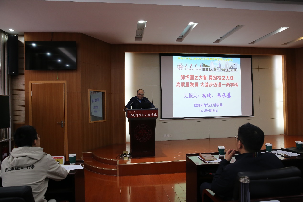 张承慧说:2022年是学院新一届管服团队履新之年、控制学科双一流建设开启元年,控制学院获批牵头建设 “控制科学与信息技术”双一流重点建设培育学科,使命光荣,任务艰巨。全院教职员工要深刻认识学院和学科面临的新目标、新任务、新要求,对标先进找差距,励精图治争一流。他从学科评估、一流学科、软科排名三个维度,分析了考察指标与评价要素,深刻揭示了学院目前在立德树人、高水平团队建设、标志性成果产出、服务社会等方面存在的差距。控制学院应胸怀“两个大局”,想国家之所虑、解国家之所急、应国家之所需,立足“三新一高”,勇担“校之大任”,以高度的历史担当,弘扬历史主动精神,奋发作为,高质量完成学院“十四五”发展规划。