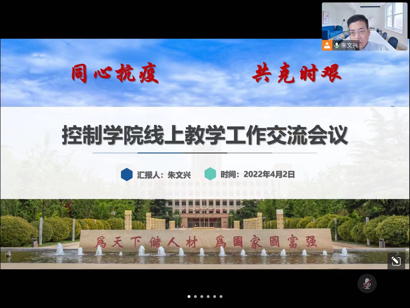 4月2日下午,为提升疫情期间线上教学质量,加强任课教师相互交流学习,促进先进教学方法推广与分享,控制学院通过“腾讯会议”召开了本科生线上教学工作交流会。控制学院党委书记高瑞出席会议,会议由教学副院长朱文兴主持。