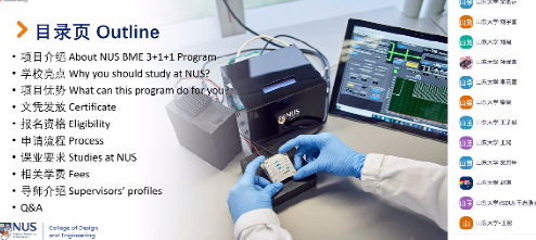 控制学院生物医学工程专业联合培养项目2020年9月正式签订,2021年学院派出首批学生,今年为第二批次。申请该项目学生完成前3年的本科课程后,经选拔可在新加坡国立大学生物医学工程系完成大四阶段并申请一年的硕士课程,通过后获得新加坡国立大学生物医学工程专业硕士学位。