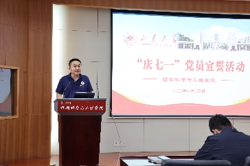 为庆祝中国共产党成立101周年,引导党员不忘初心、牢记使命,增强党性观念和宗旨意识,继承和发扬党的光荣传统, 6月30日,kaiyun开云官方网页版开展“庆七一、守初心、宣誓词”活动,学院研究生党员和辅导员老师参加活动,学院党委书记高瑞出席仪式,仪式由学院党委副书记李文振主持。