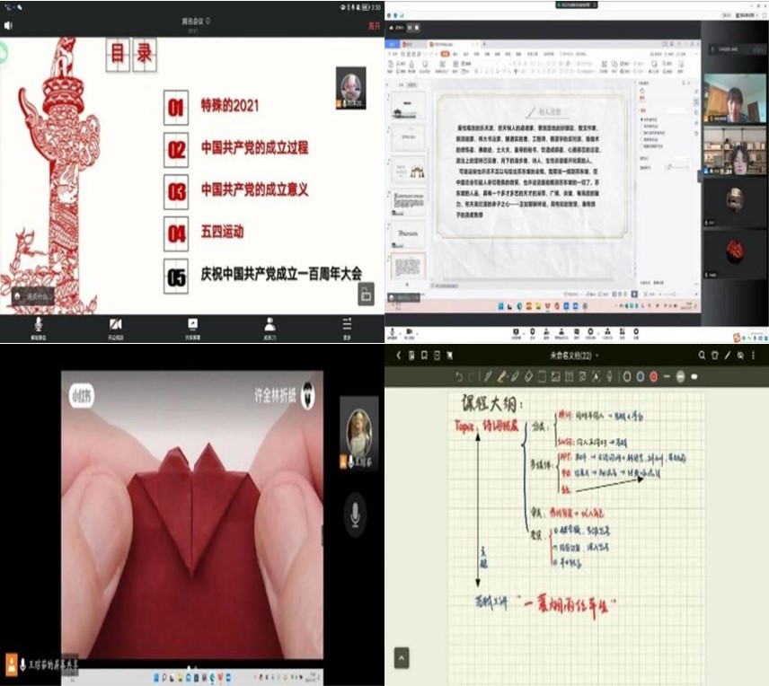 云支教跨越山海,心连心携手同行。考虑到目前尚为严峻的疫情形势,白银支教队借助线上平台,为甘肃省白银市的同学们带来 “七彩课堂”线上支教,设置红色知识小课堂、手工制作、诗词教学等课程,通过多样的授课方式努力提高教学质量和小朋友们上课时的积极性。结合线上教学的特殊性,支教队安排助教老师提前发布通知,并与当地老师及家长协商,共同督促孩子们进入课堂。疫情无法阻挡支教队成员的脚步,遥远的距离无法阻隔渴望知识的心灵,云支教冲破距离的阻隔,让支教队老师与孩子们心连心携手前行,共同进步。