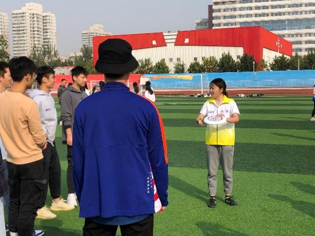 活动中,高兆志同学向大家科普了极限飞盘起源、发展和精神;赵丽丹同学带领大家进行了充分的热身活动;表演赛运动员们担任教练,向同学们介绍了不同方式下的握盘、接盘的动作技巧,带领大家进行简单的飞盘握、接、投掷动作训练。