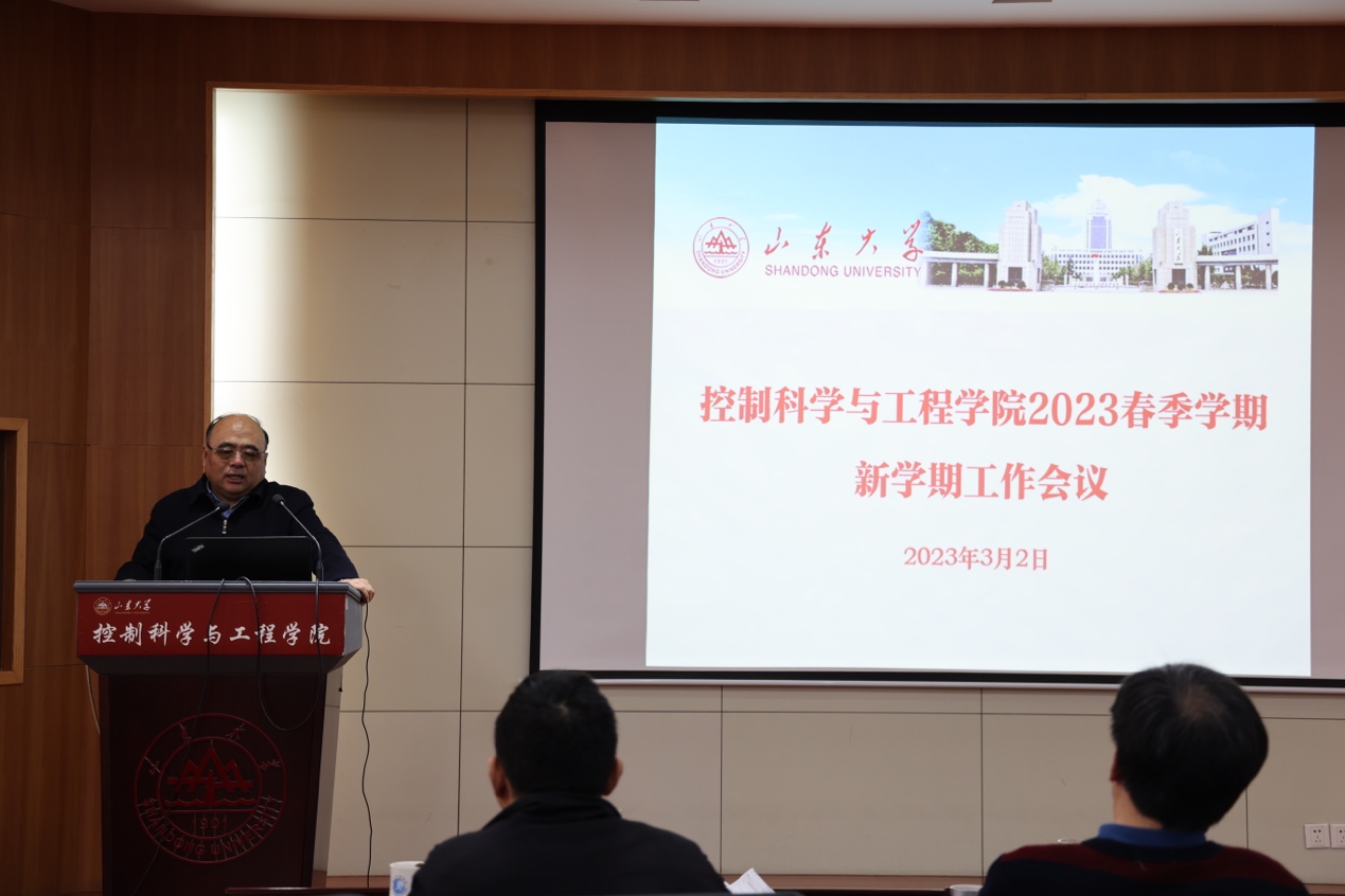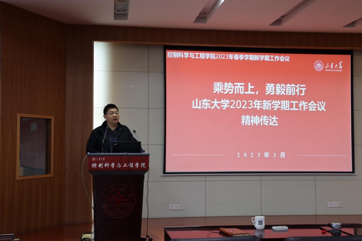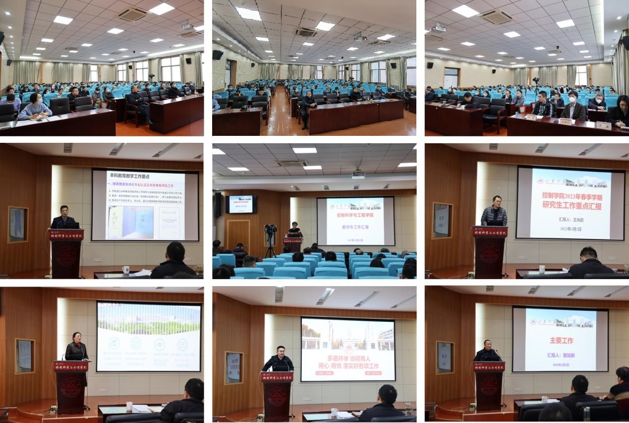 他指出,2023年是全面学习、全面把握、全面落实党的二十大精神的开局之年,也是实施十四五规划、推进新一轮“双一流”建设的关键之年。要进一步做好学院平台建设规划,持续打造国家级、省部级等高质量科研和教学平台。拓展对外合作资源,集聚校友资源优势,不断提升学院服务行业、服务地方的能力。用好用足学院建设经费,确保学院经费支出发挥最大效能。加强科研组织和科研发动,点面结合做好各级各类科研项目的组织申报工作。做好自动化专业认证和本科实验室建设工作,建立健全教学团队、课程负责人制度和本科实验室管理体系,聚焦国家一流课程、优秀教材建设,切实提升本科教育教学质量。盘活国际合作资源,依托创新引智基地开拓学院国际合作交流新局面。精心打造一流人才队伍,推动海外招聘常态化,持续优化学院人才队伍学缘结构。改革研究生教育和管理,多渠道延揽优质生源,推进研究生教育改革工作。加强学院文化建设,以学院宣传画册的设计制作为抓手,实现院史上墙、教授上墙、成果上墙。他勉励全体教职工实干苦干加巧干,为实现年度目标、为年底亮出漂亮的成绩单作出自己的贡献。