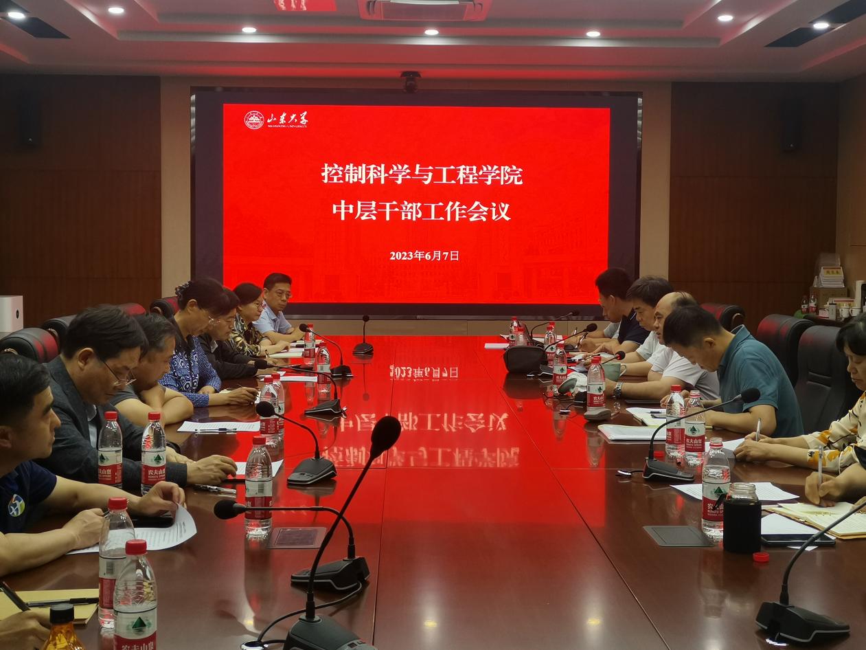 6月7日19:30-22:30,控制学院在千佛山校区教学四号楼德法厅举行学院中层干部工作会议,结合学习贯彻习近平新时代中国特色社会主义思想主题教育读书班调研成果部署下一步学院事业发展重要工作,会议由学院党委书记高瑞主持,院长张承慧谈了主题教育学习体会并结合学院实际提出了高质量发展要求。