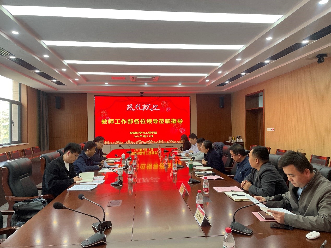 3月14日下午,山东大学党委教师工作部部长张青、副部长朱伟一行到访控制学院调研指导。学院党委书记吴晓晴主持会议,学院教工党支部书记、管理服务团队参加会议。