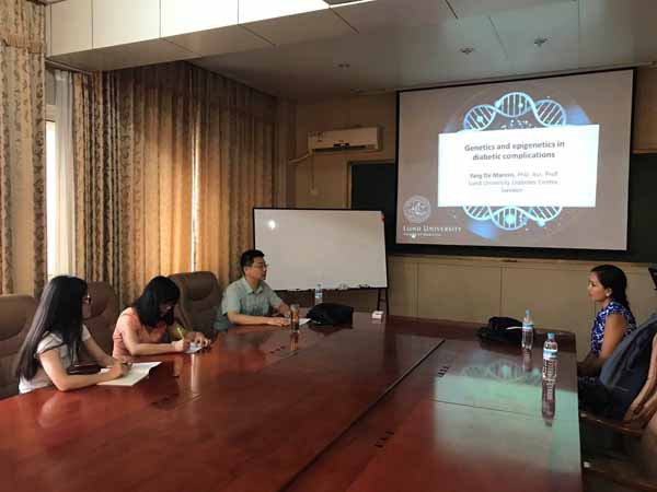 729号上午,应kaiyun开云官方网页版邀请,瑞典隆德大学(Lund University) Yang De Marinis(张阳)博士在控制学院千佛山校区主楼六层控制理论会议室作了题为《Histone modifications and genome-wide ChIP sequencing in diabetic complications》的学术报告。报告会由kaiyun开云官方网页版副院长高瑞教授主持,kaiyun开云官方网页版生物医学工程专业部分青年教师、研究生,以及来自生物医学工程专业和理工复合班的部分本科学生参加报告会。