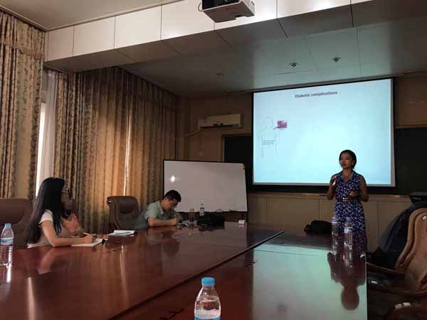 Yang De Marinis(张阳)博士在报告中指出了高血糖是一种有效的表观遗传改变的诱导因素,表观遗传调控与糖尿病并发症的发生具有密切的因果关系。目前,其研究团队正在运用尖端技术,包括全基因组染色质免疫沉淀测序(ChIP-seq)和基因组编辑工具CRISPR/Cas9等对糖尿病患者肾脏活检、动脉粥样硬化斑块巨噬细胞和单核细胞进行研究,在不同的人和动物细胞中可以用nuclerotide CRISPR/Cas9来编辑最高候选基因和单基因多态性(SNPs)以进行详细的功能学习。报告之后,Yang De Marinis博士还和与会师生针对报告中的一些问题展开了热烈的讨论,高瑞教授最后进行了总结。
