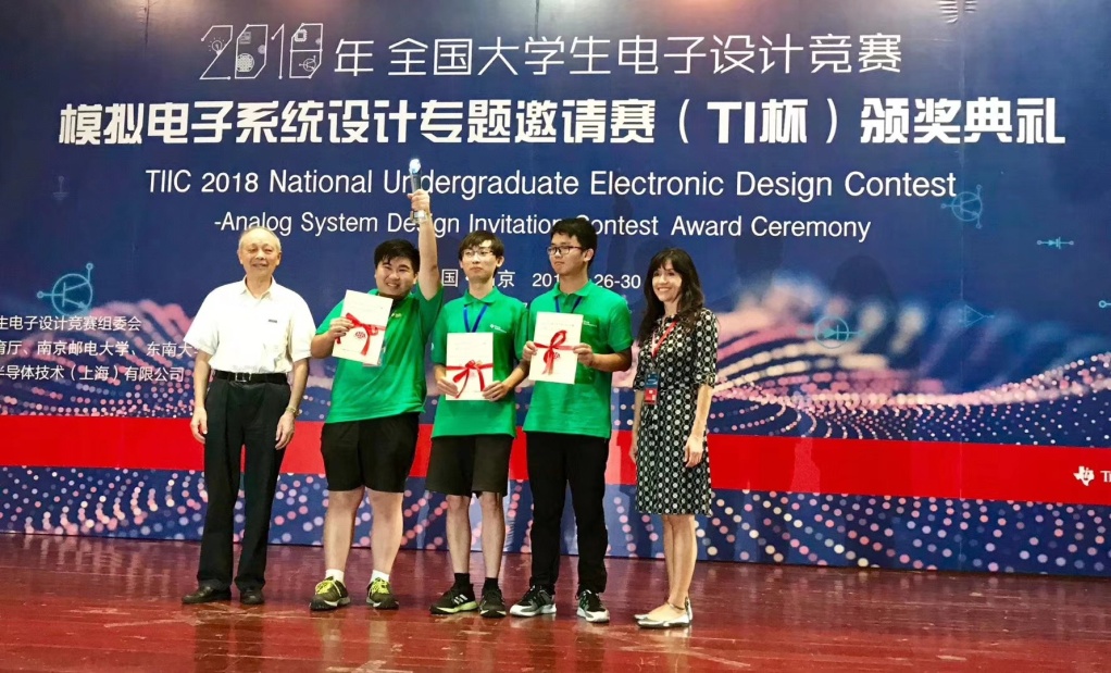 8月26日-8月30日,2018年全国大学生电子设计竞赛模拟电子系统设计专题邀请赛在南京邮电大学举行,经过两天一夜的全封闭的激烈角逐,我校kaiyun开云官方网页版2015级本科生王笑涵和2016级本科生李效霖、从政组成的队伍凭借杰出作品《数字多用表》新颖的构思及优异的性能指标脱颖而出,获得本届邀请赛最高奖项TI杯。中国科学院郑有炓院士、德州仪器公司全球大学计划市场传媒总监Patty Arellano女士亲自为他们颁奖。本届邀请赛我校参赛队伍的选拔、培训和参赛由学校电工与电子创新设计教育平台牵头组织,控制科学与工程学校负责具体指导和比赛保障。