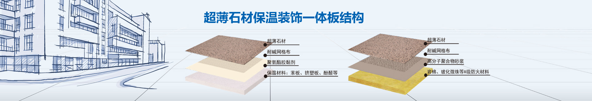 实验数据表明:装饰保温一体化的薄型石材粘贴加锚固墙面装饰,与钢质龙骨干挂外墙比较发现:5--8mm厚的薄型石材单位重量为每平方米10~15kg,粘贴后,单位墙面受重每平方米20~25kg,距离原墙面2~3mm,粘贴石材每人每天可操作完成10平方米以上,单位施工成本比普通石材钢龙骨干挂节约150-200元人民币以上。通过脱落安全检测实验表明:薄型石材的压缩剪切厚强度、耐温强度、耐水强度、耐冻融强度和收缩率均达到标准要求,节能环保优势突出。